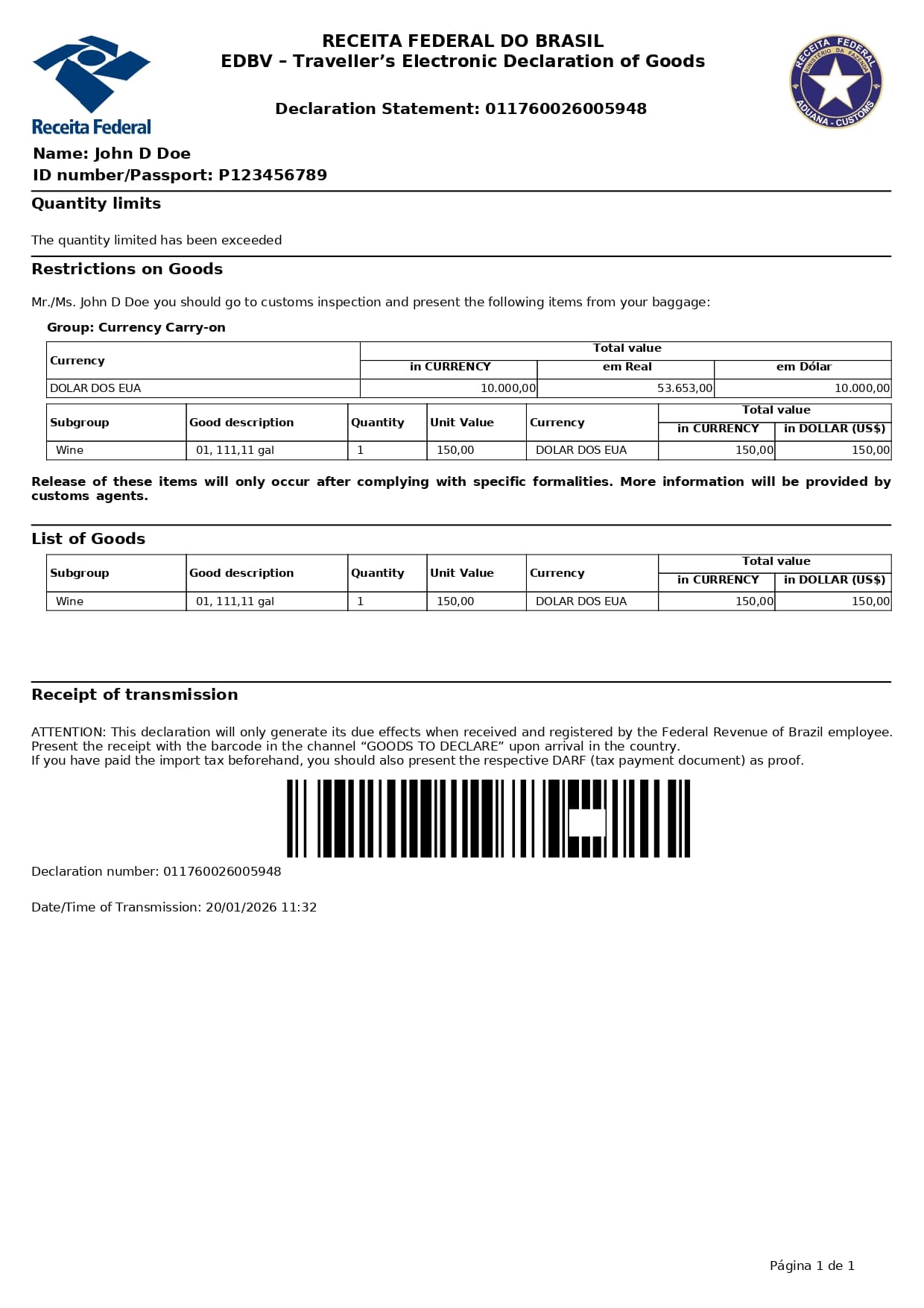 The Brazil Electronic Customs Declaration —also known as the Brazil e-DBV,Declaração de Bens de Viajantes, Brazil Customs Form, Brazil Arrival Declaration, or Brazil Traveler Goods Declaration—is the official digital platform used by Brazilian Customs (Receita Federal) for travelers who need to declare goods upon entering or leaving Brazil.